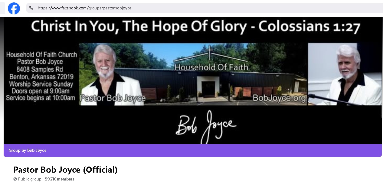Other Facebook groups using the name of Pastor Bob Joyce or Household of Faith are not the official Facebook group that was started personally by him in 2017. facebook.com/groups/pastorbobjoyce
